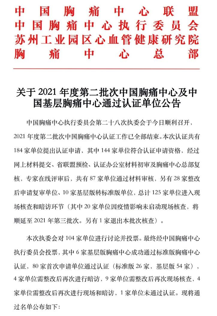 8月26日,中国胸痛中心发布了《关于2021年度第二批次中国胸痛中心及中国基层胸痛中心通过认证单位公告》,广州市第一人民医院榜上有名,顺利通过国家级胸痛中心(标准版)认证!