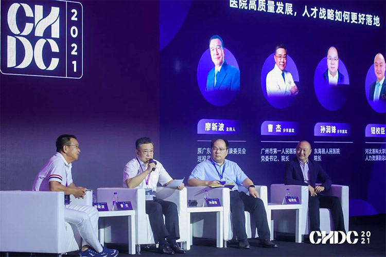 医院党委书记、院长曹杰受邀参加,在会上做了题为《高水平医院建设人才创新和发展战略》的主题分享,并分别参加了“高校卫生人才职业发展研讨沙龙”和医院高质量发展,人才战略落地的圆桌经验分享。