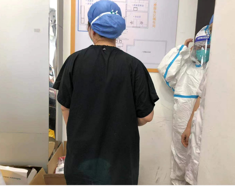医务人员在户外34度高温下连续作战,医院紧急派84人支援采集,3班替换,保证医务人员休息。休整的医务人员说,“脱下来的防护服全是水,看到队伍越来越短,也就放心了”。