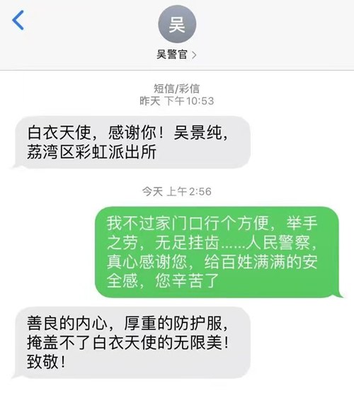 面对吴警官的感谢,黄赛瑶却感恩警察的付出:“我不过家门口行个方便,举手之劳,无足挂齿……人民警察,真心感谢您,给百姓满满的安全感,您辛苦了!”