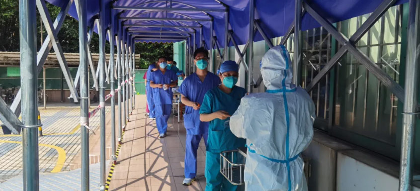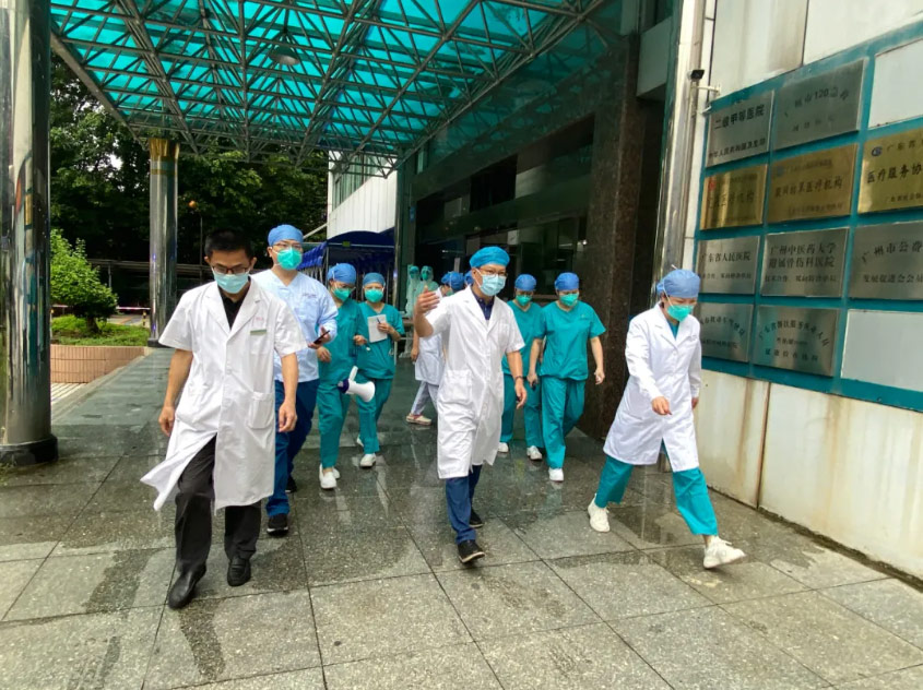 6月4日,广州第一人民医院闻令而动,快速响应,发挥高水平医院优势,发挥武汉抗疫医务管理经验,集结抗疫突击队。作为医疗主力和领队单位,由余纳副院长带队20人赶往荔湾区南片区的封闭管理区域A区(包括白鹤洞街、东漖街、中南街),进驻广钢医院。广州市卫健委协调广州市14家医疗机构共同负责封闭区的内日常医疗和危急重症救治工作。