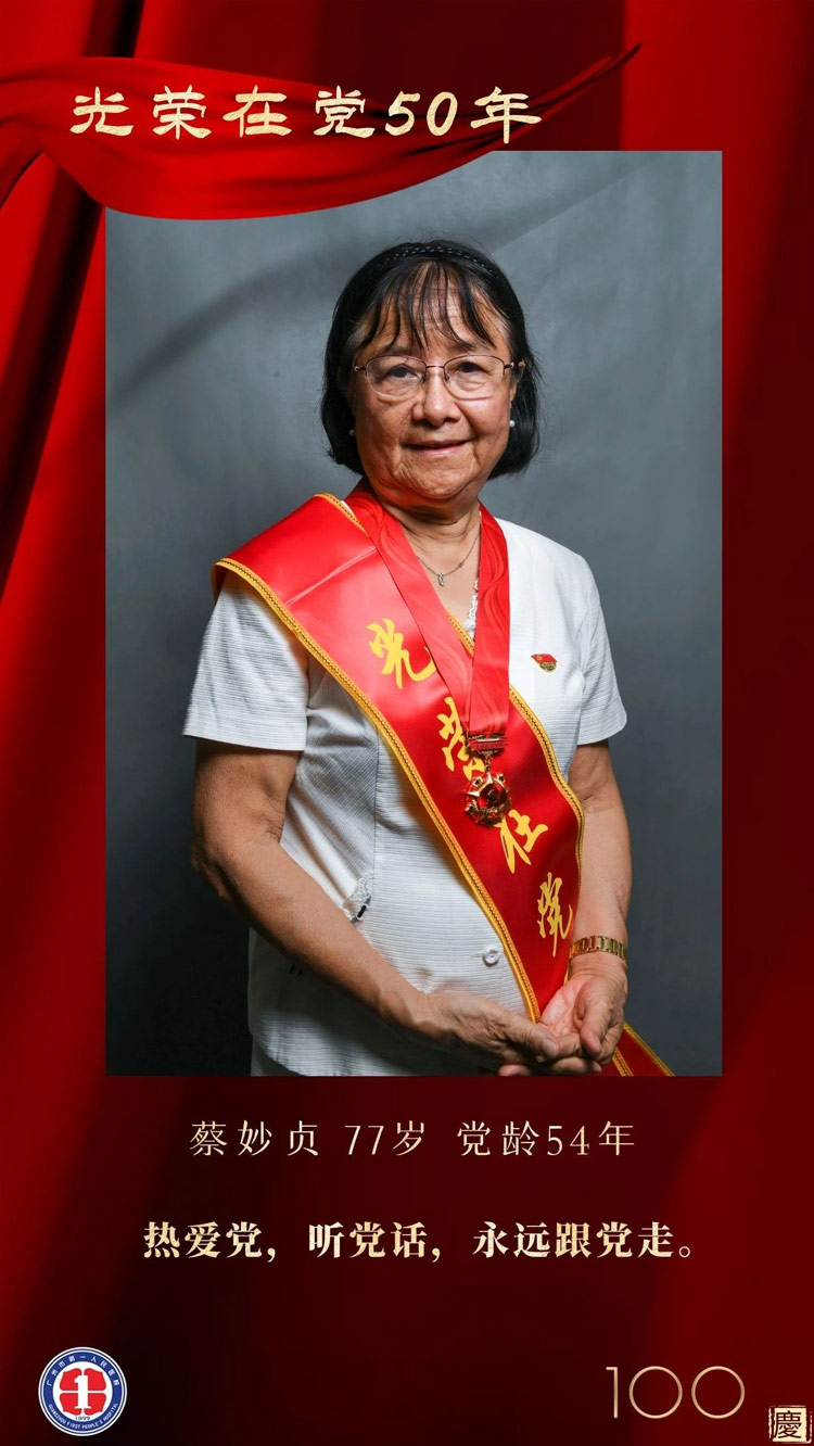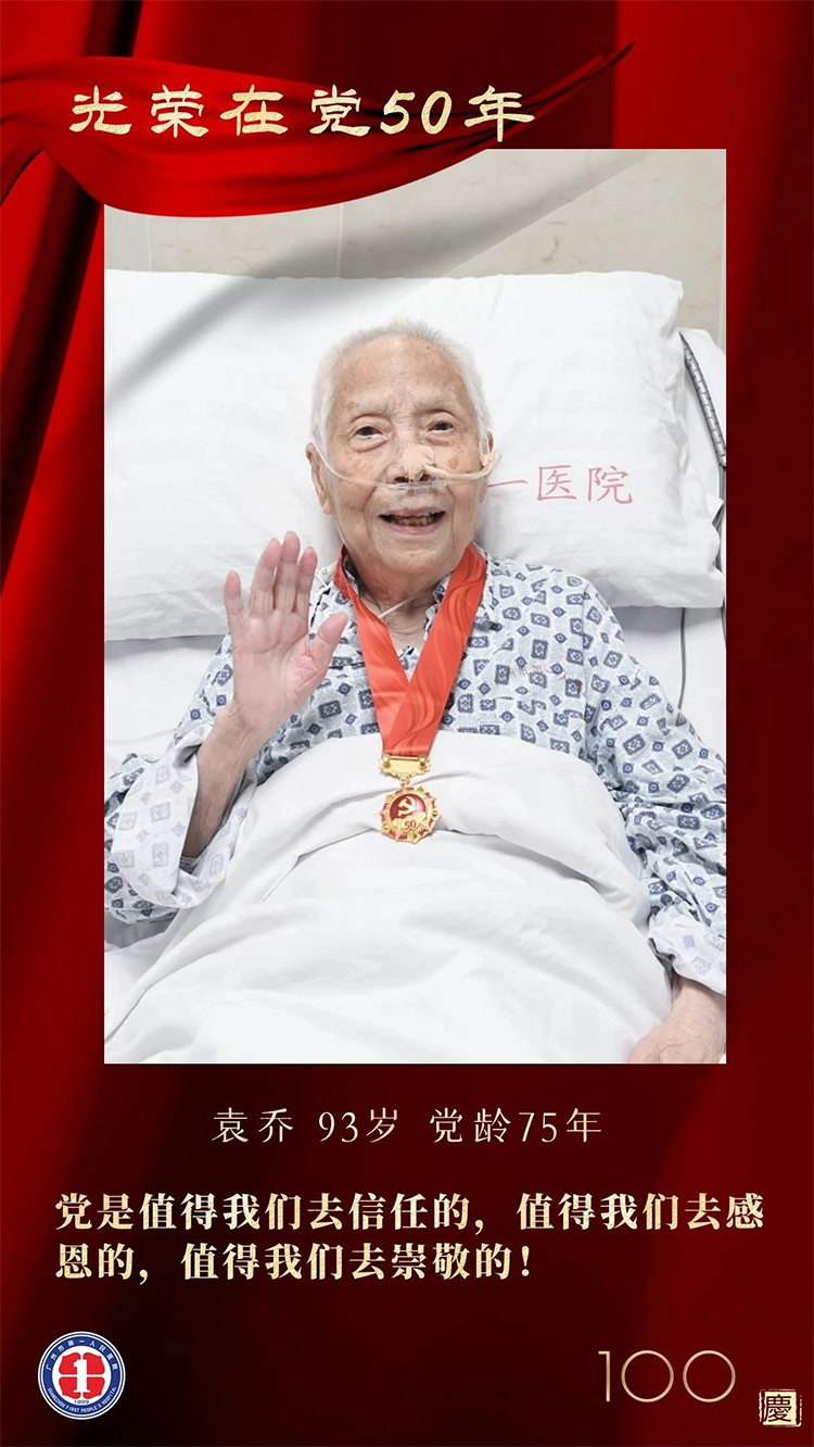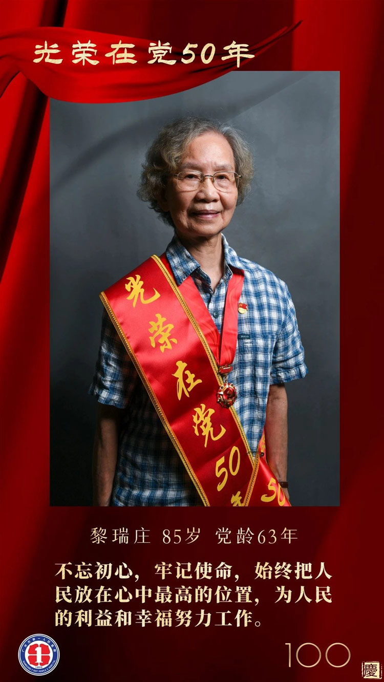 “回顾我在医院工作的这些年,我感到最为自信和自豪的就是,党组织分配我到哪里,我就到哪里,并且都努力做好本职工作。今天收获这枚纪念章,我非常激动,在中国共产党成立100周年之际,感谢党组织以这种特别的形式给予我们老同志无上的光荣感和使命感。不忘初心、牢记使命,坚定个人的信念,不辜负国家和人民的信任!”85岁的黎瑞庄曾是护理部主任,党龄63年。