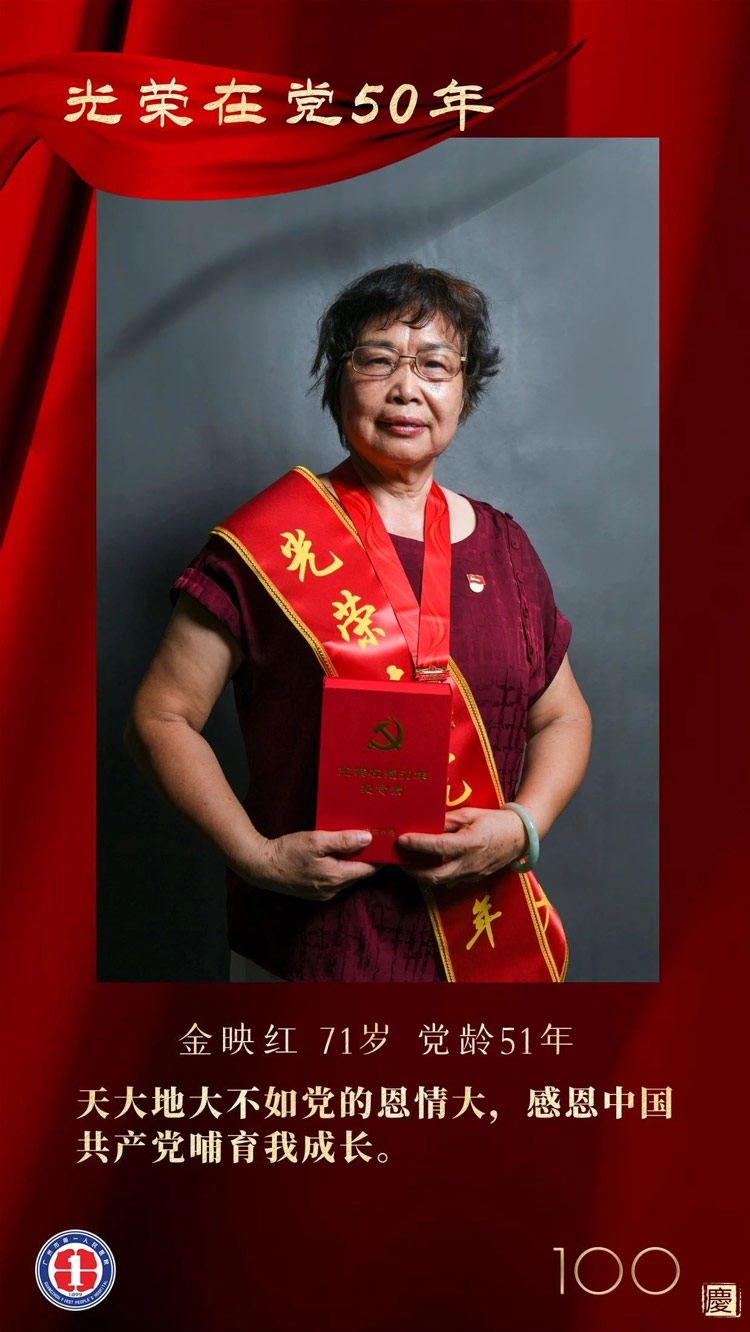 “51年前,我是从一个兵团战士、知青成为一个共产党员,也担任了20年的党支部书记,在这里有无限感恩,感谢医院党委对我的培养栽培,也一直有句话牢记心中,天大地大不如党的恩情大!”71岁的金映红是市一医院的原妇产科医师、医院优秀党员,担任过在职支部书记和退休支部书记,51年党龄。