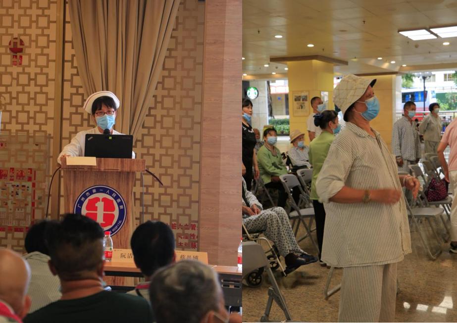 蔡丹嬿副主任护师为大家讲解呼吸操的作用,并贴心地为大家示范了呼吸功能锻炼操及站立呼吸操,现场气氛踊跃,大家争相学习。
