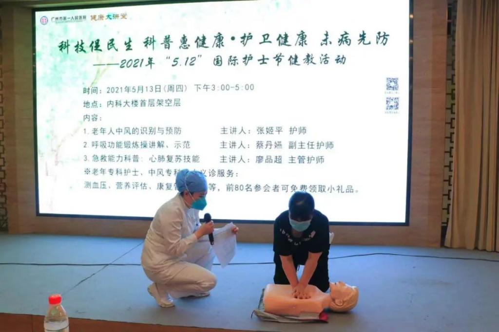 此次活动围绕老年人中风的识别与预防、呼吸功能锻炼操讲解示范、急救能力科普—心肺复苏技能,面向社会公众普及和培训相关知识和基本技能,提升群众对疾病的识别能力,应急处理能力。
