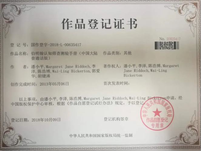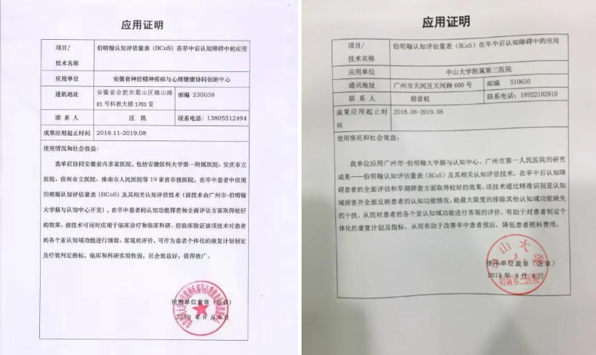 课题组于2013年研制完成中文版BCoS量表,包括普通话版和粤语版。中文版BCoS量表不是简单的翻译,而是结合中国人群和以粤语为母语的人群的语言、文化和生活习俗的再创造版本,量表研制完成后已通过临床应用充分证实了在中国卒中患者人群的有效性。