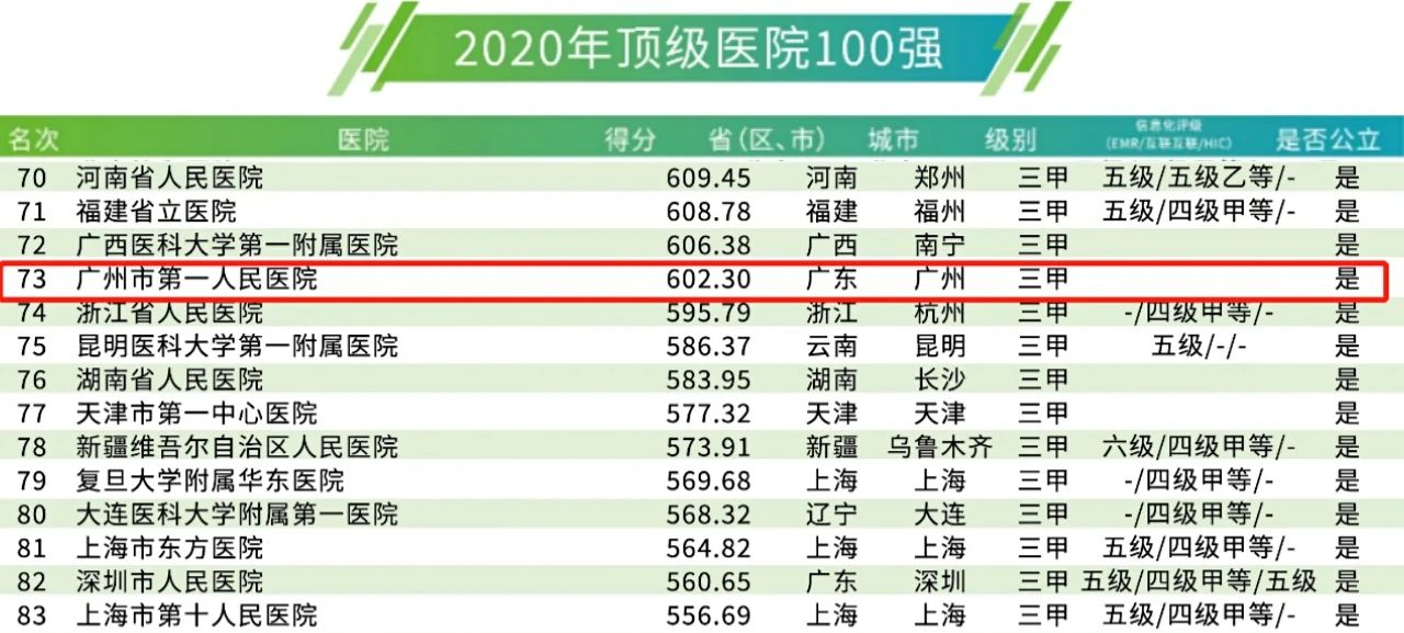 何为全国顶级医院100强名单?