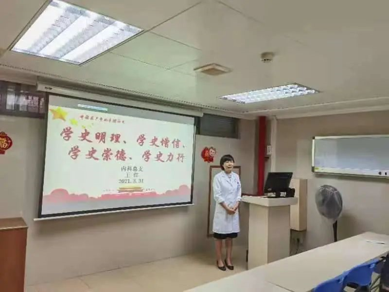 我院开展“百名党员讲党课”活动,党务干部带头,邀请老党员、优秀党员,以主题微党课的形式,共同追忆革命历程,坚守革命初心,传承革命精神。已开讲的党课有鹤洞分院专职党支部书记林妙峰《为什么说以人民为中心是我们党的根本立场》、内科党总支书记王红《“学史明理、学史增信、学史崇德、学史力行”之中国共产党党史微学习》。