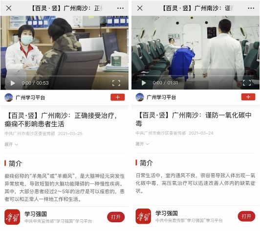线上健康大讲堂活动目前已开展6场,每场线上讲座点击率超10万人次,有效为广大人民群众答疑解惑。南沙医院内科党支部健康科普短视频《癫痫》、《一氧化碳中毒》登上“学习强国”平台。