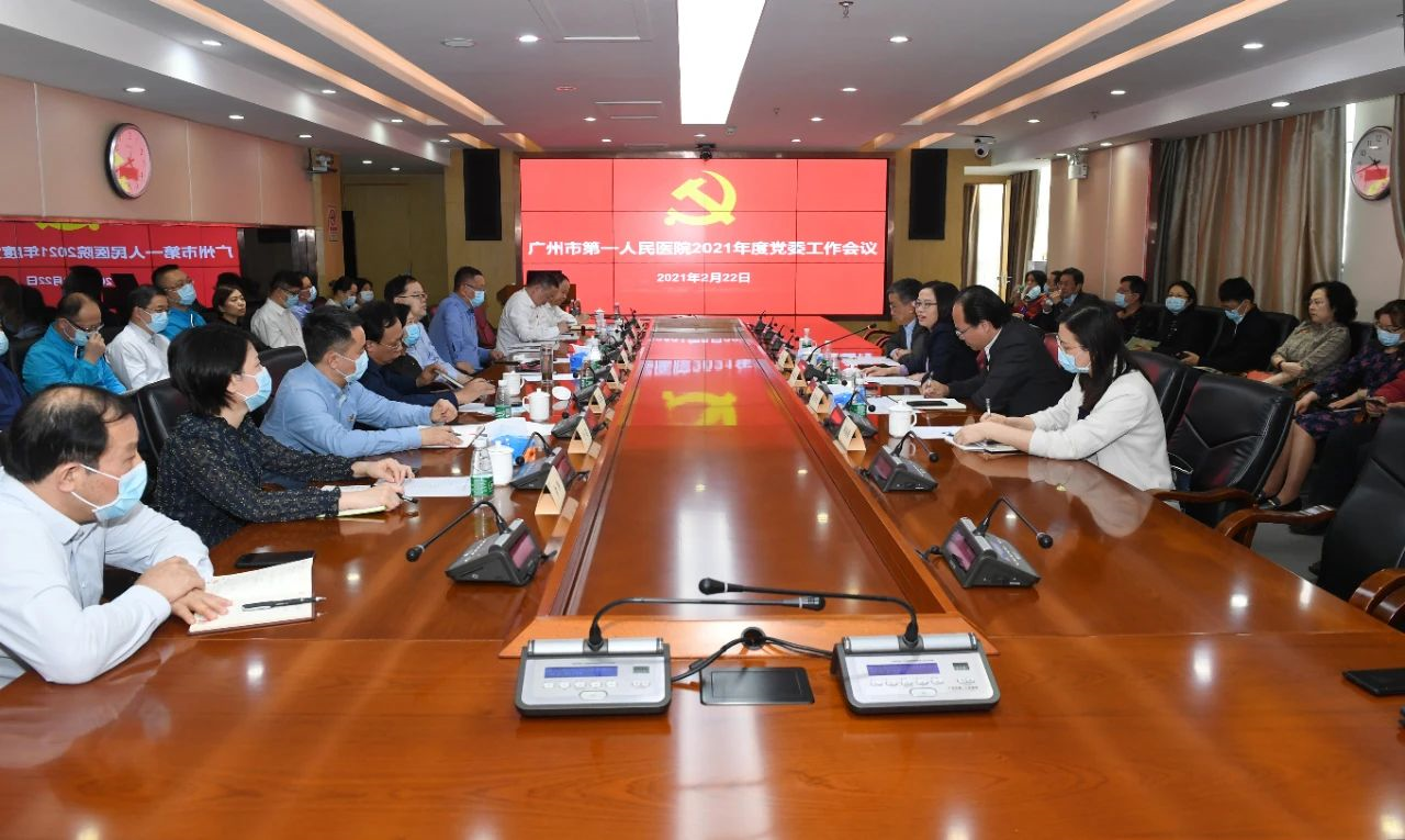 2021年2月22日,广州市第一人民医院在英东门诊八楼第一会议室召开2021年度党委工作会议,广州市卫生健康委员会党组成员、副主任陈斌,市纪委监委驻市卫健委纪检监察组纪检监察室副主任林晓燕出席会议。全体医院领导、副处级以上领导干部、职能部门负责人和临床医技一级科室主任等参加了会议。党委书记黄光烈主持会议。