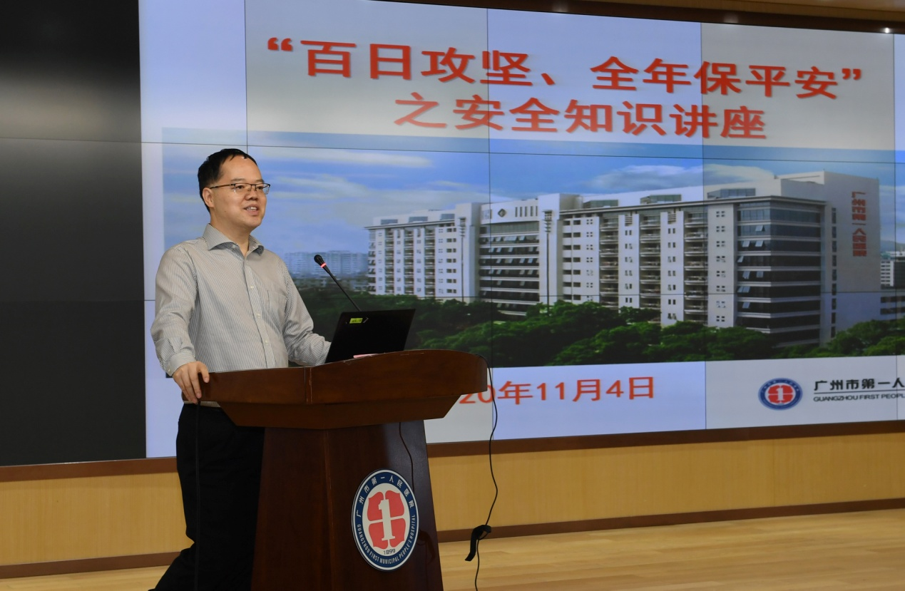 2020年11月4日,广州市第一人民医院在门诊九楼学术报告厅举行了“百日攻坚战 全年保平安”安全工作会议,曹杰院长、黄光烈书记、贺小伶副书记、江新青副院长、蔡国才纪委书记及总支书记、职能部门和临床科室的安全管理责任人参加此次会议,会议由江新青副院长主持。