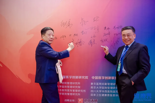 *复旦大学医院管理研究所所长高解春(左)与曹杰院长(右)在现场