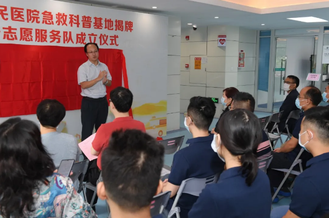 9月10日,在世界急救日(9月12日)前夕,广州市第一人民医院进行急救科普基地揭牌,同时成立急救科普志愿服务队。广州市科协科普部二级调研员郭明华、医院党委书记黄光烈、副院长江新青、相关职能部室负责人及急救志愿服务队员们参加了活动。副院长江新青主持活动。