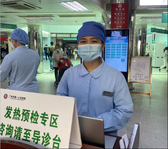 在新冠肺炎疫情防控工作,陈静文跟随门诊客服部参与预检分诊工作,从加强预检分诊区域建设工作开始,无论是通风设施还是患者专坐,都细心及严格质控管理。保每位患者均有测温与排查,做到准确分诊疑似患者。