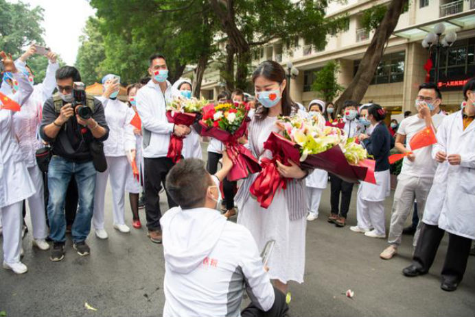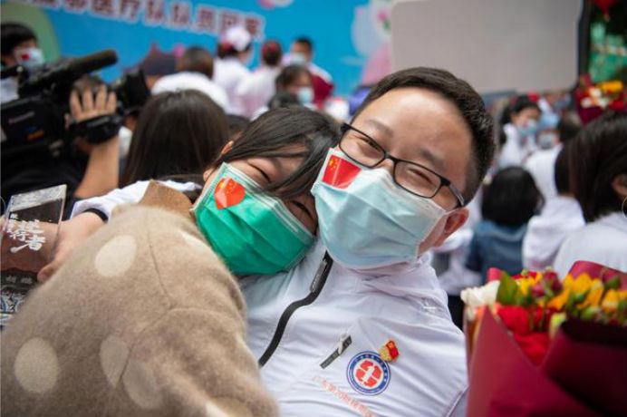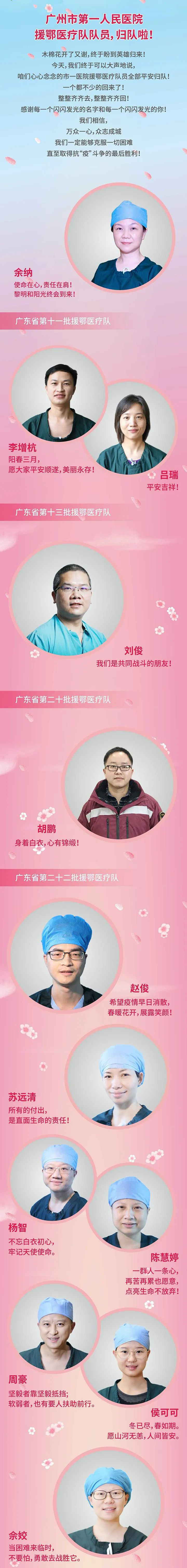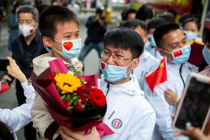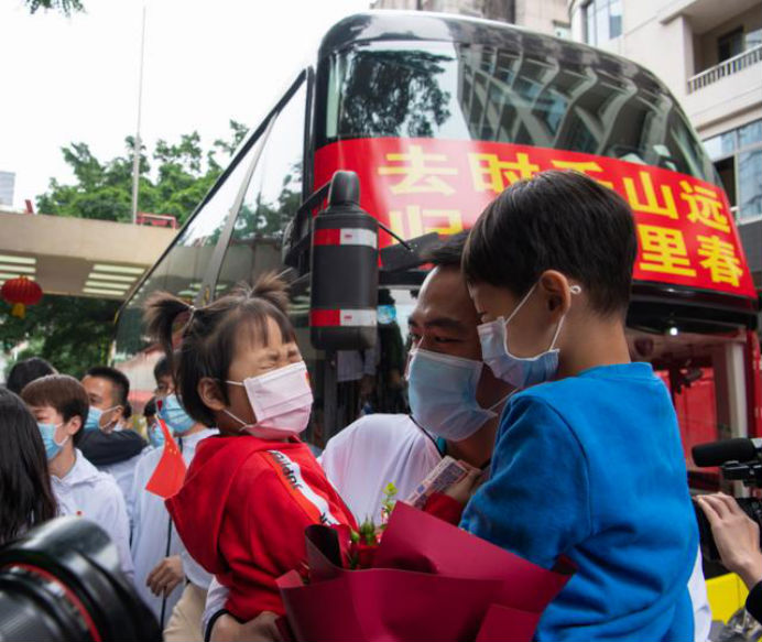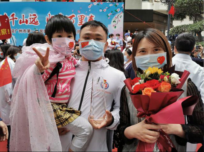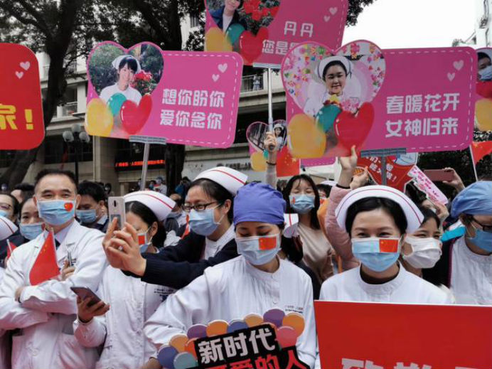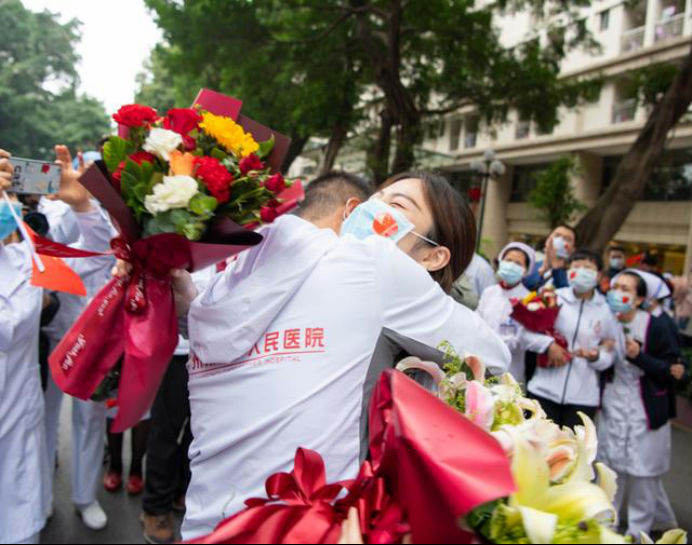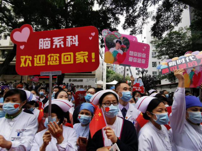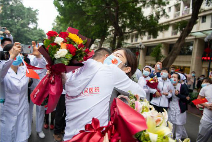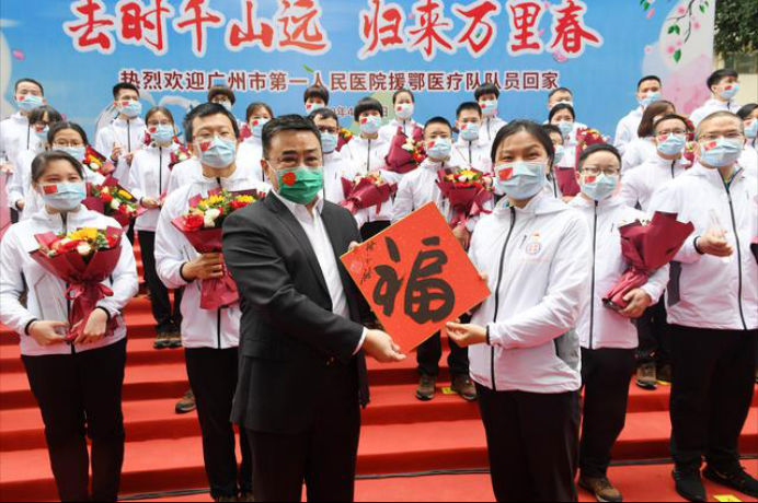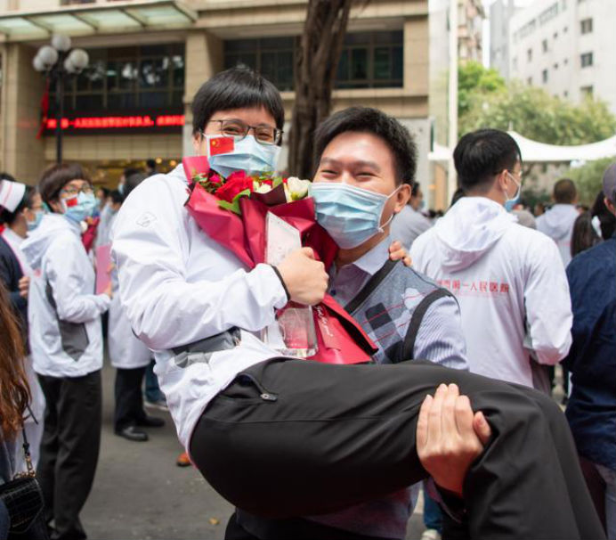 在新冠肺炎疫情最危急的时刻,在祖国最需要的时候,我院的白衣英雄坚决响应习近平总书记和党中央的号召,主动请缨,带着责任和使命,逆行出征、驰援武汉,你们以崇高的医德、精湛的医术、过硬的作风,出色完成了救治任务,弘扬了我院“仁心仁术、方便为怀”的大爱精神。你们剪短的秀发、脸上的勒痕、湿透的衣衫、疲惫的身影,彰显了英雄的缩影。你们是广东的骄傲,广州的骄傲,更是我们市一医院的骄傲!希望援鄂归来,放下荣誉,重新出发,为夺取疫情防控和医院建设发展“双胜利”作出新的更大贡献。