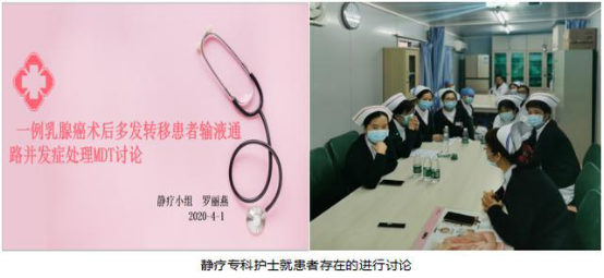 护理MDT案例,为患者即刻解决难题的案例不在少数。乳腺癌晚期患者罗阿姨,由于长期放化疗,上腔静脉有压迫,只能通过下肢PICC置管,然而,又出现了下肢PICC导管异位输液不畅的情况。4月,静脉治疗护理专业小组的一次护理MDT中,各领域的专科护士就罗阿姨的病例,展开了讨论: