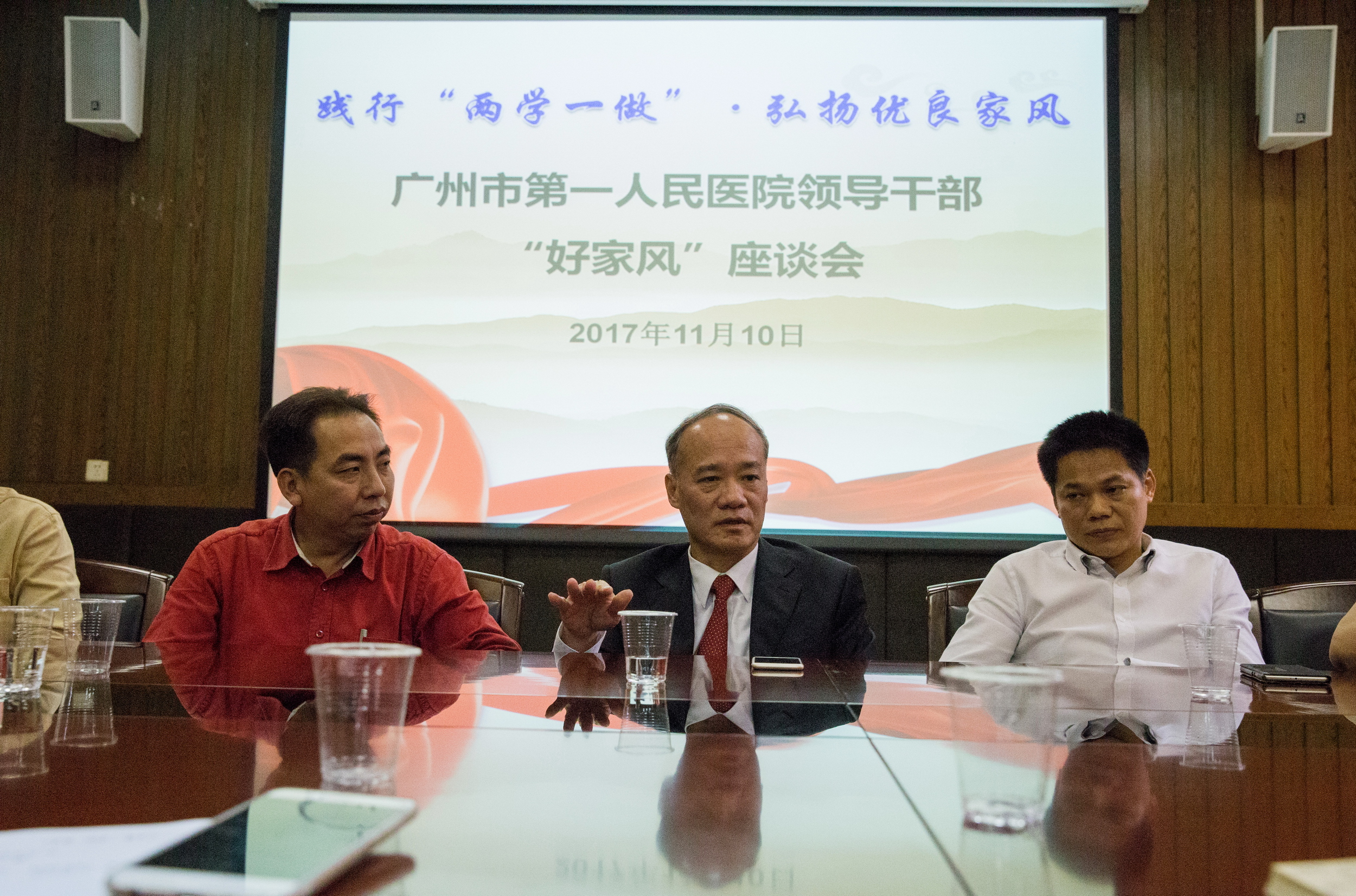 为深入贯彻落实习近平总书记关于“注重家庭、注重家教、注重家风”的重要讲话精神,推动“两学一做”学习教育常态化制度化,2017年11月10日上午,我院在影像楼6楼组织召开“践行两学一做·弘扬优良家风”家庭助廉座谈会,医院五级职员、副处级领导干部、部分支部书记、部门工会主席代表近三十人参加了座谈会,党委书记蒋少艾、南沙医院党总支书记黄逸辉参加座谈会。