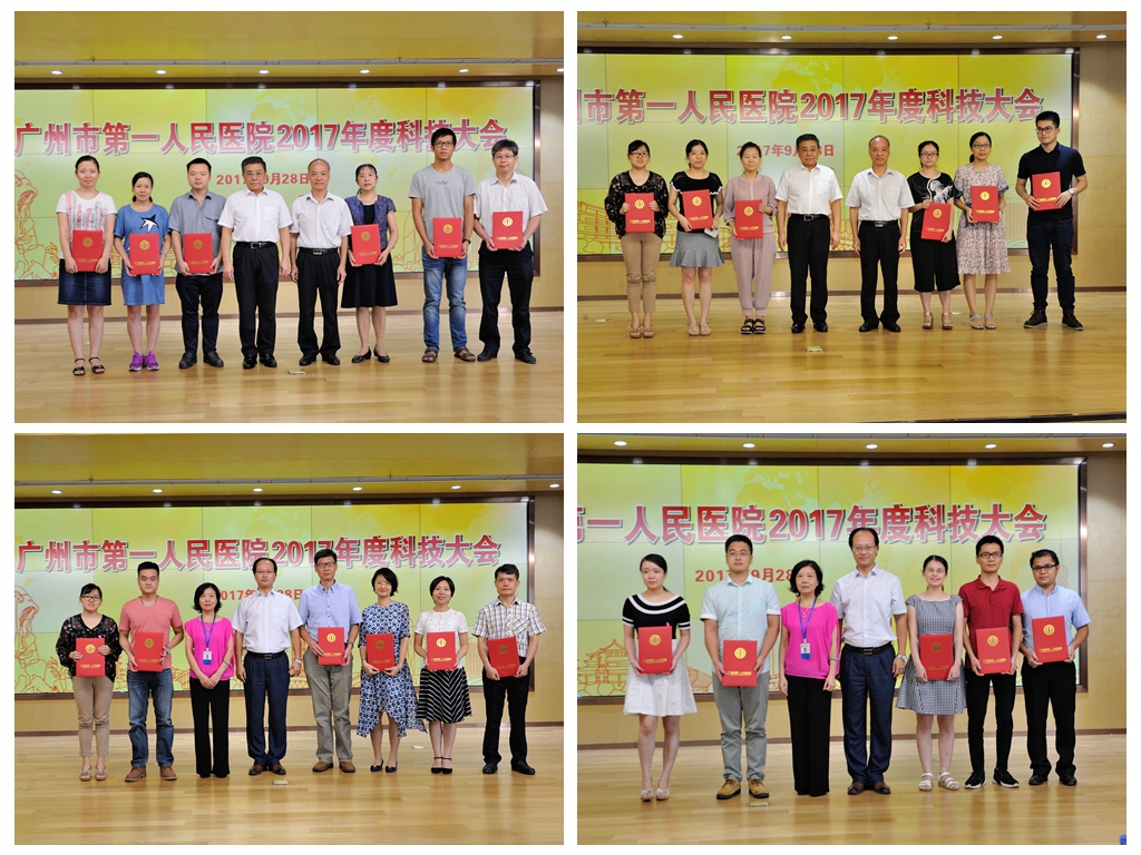 会上,江新青副院长宣读《广州市第一人民医院关于表彰2013-2017年度医院科技奖励及2017年度国家自然科学基金项目获得者的决定》,随后院领导班子成员为2017年度广州市第一人民医院科技奖励获得者、2017年度国家自然科学基金获奖者代表颁奖。