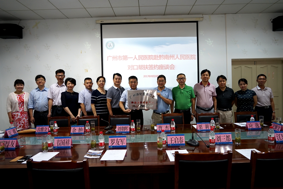 为贯彻落实《国务院办公厅关于开展对口帮扶贵州工作的指导意见》(国办发〔2013〕11号)和《2013—2020年广州市黔南州对口帮扶合作框架协议》文件的相关精神,2017年8月16日,我院院长曹杰、副院长刘朝晖带队一行9人,赴贵州省毕节市、黔南州两地开展对口帮扶工作,此行得到当地卫计委及受援医院的高度重视。