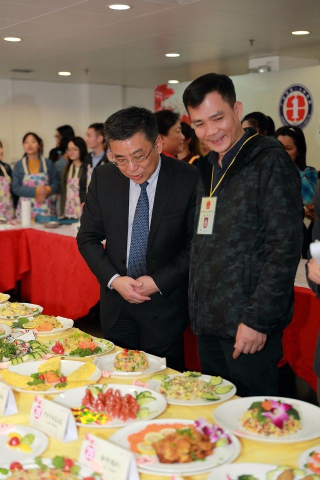 大赛分为规定菜式和自选菜式两项比赛内容,现场选手们纷纷拿出看家本领,亮出绝活一决高下,麻利地操起锅碗瓢盆,熟练地调起油盐酱醋,“煎、炒、炸、烩”样样拿手,每一道工序都娴熟老道,选手对每一道菜都进行了精心选材、精妙设计,有的注重“包装”,有的注重火候、有的注重味道,一个个菜式都力求“色、香、味、形”俱全,大家合作默契,热情高涨。灶台前女同志们自然是主力军,男同志们虽少,可也须眉不让巾帼,洗鱼剪虾炖排骨,颠勺翻炒火焰高,十八般武艺,十八般兵器,八大菜系,五味俱全。值得一提的是本届大赛还出现了几对分工明确配合默契的“夫妻搭档”,站在旁边的员工“观众”纷纷伸出大拇指为他们点赞。