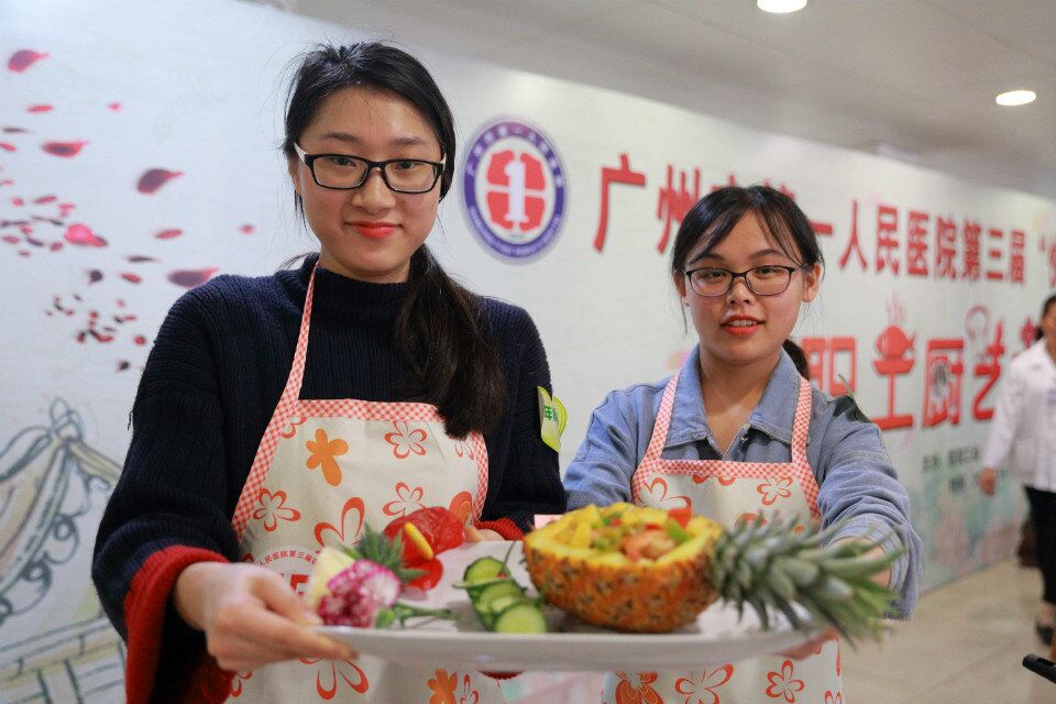 大赛有幸邀请到花园酒店厨师长郑国璋、东方宾馆厨师长邝其进、广州市总工会技能学校高级厨师梁顺明等老师担任本次大赛的评委。评委按照色泽与形态、口味与质感、创作与实用、工艺与火候等要素进行现场打分。经过品鉴,妇产科部门工会林小丹、张沛的《紫金之恋》和门诊部门工会陈凯怡、冯美妍的《虾饺酿鸡翅》获得一等奖;儿科部门工会李秋媚、熊艳的《孔雀开屏》、影像部门工会辜秀峰、陈德成的《硕果累累》、老年科部门工会温松忠、傅丽华的《孔雀开屏》、影像部门工会杨俊、伍云香的《吟菊》获得二等奖;急诊科部门工会秦岭、伍慧红制作的《望湘园》、老年科部门工会林华钰、杨美娟的《菠萝的海》、门诊部门工会郭燕芬、黄秀英的《西柠鸡扒》、内科部门工会何花、赵伊娜的《五彩缤纷》获得三等奖。郑国璋老师为选手做点评,他首先表达了对医务人员的敬意,说想不到严谨的医务人员也能这么有创意地将一道道家常菜变得色香味俱全。他分别从菜品的观感、质感、味感、营养卫生以及创新与使用等方面对这些佳肴进行点评,让选手们在欢笑声中收获良多。