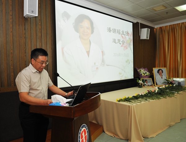 11月6日下午,我院中医科在影像楼6楼举办潘锦瑶主任追思会,医院院长曹杰、党委书记蒋少艾、副院长刘朝晖、党委副书记、纪委书记贺小伶、副院长黄光烈与医院老领导、老专家代表、潘锦瑶教授亲属、中医科、病友代表等共同参加了追思会。深切缅怀潘锦瑶教授,追思她正直、仁厚、奋斗的一生,追思她留给我们的宝贵精神财富。中医科张彦红医生主持了会议。