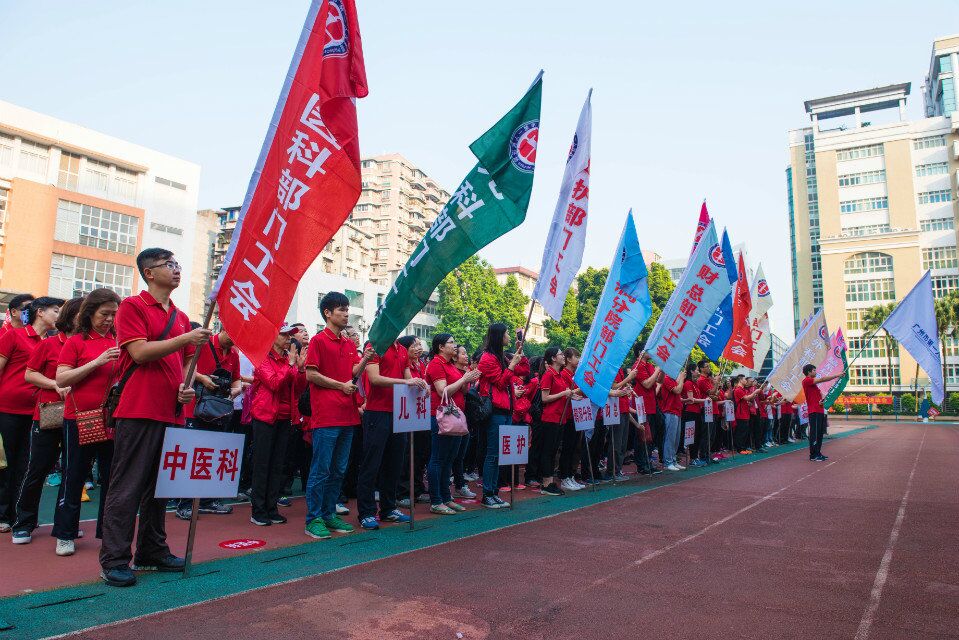 上午8时,伴随着激荡人心的入场曲,各方阵运动员穿着整齐划一的运动服,在运动场集合完毕。曹杰院长、蒋少艾书记、刘朝晖副院长、贺小伶副书记、黄光烈副院长、江新青副院长、南沙医院黄逸辉书记出席了开幕式。