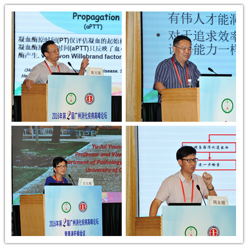 我院聂玉强教授就凝血与肝病的内容做了详细的解读,介绍了肝病的高纤溶、发生在细胞基础的凝血模型等内容。首都医科大学附属北京佑安医院段钟平教授与大家分享了非传染性肝病的进展;第四军医大学西京消化病院韩英教授介绍了免疫性肝病的诊治进展。香港中文大学医学院于君教授介绍了肝细胞癌突变的相关研究;美国加州大学戴维斯医学中心万又瑞教授介绍了肠道菌群及其相关胆汁酸与脂肪性肝炎的关系;日本国立长崎大学李桃生教授分享了干细胞研究的进展。我院贾林教授、古维立教授、周永健教授及兄弟单位专家也对消化病学热点话题展开了阐述。