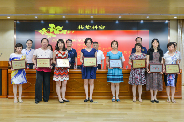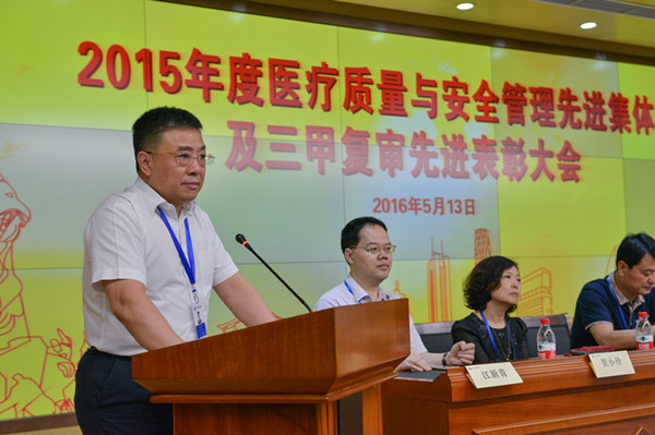 随后,蒋少艾书记宣读了表彰2015年度医院医疗质量与安全管理先进集体、2015年度三甲复审先进集体和个人的决定。院领导为获奖科室及个人颁发荣誉证书。