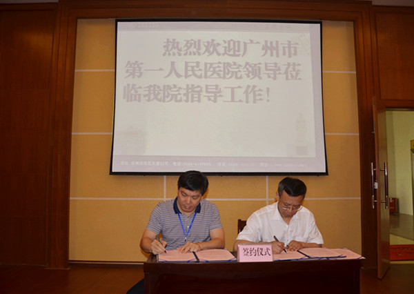 2016518院聂玉强副院长带领行政、临床、护理一行12高州市中医院举行医疗技术协作签约暨“广州市第一人民医院技术协作医院”和“广州消化疾病中心高州临床诊疗基地”揭牌仪式。