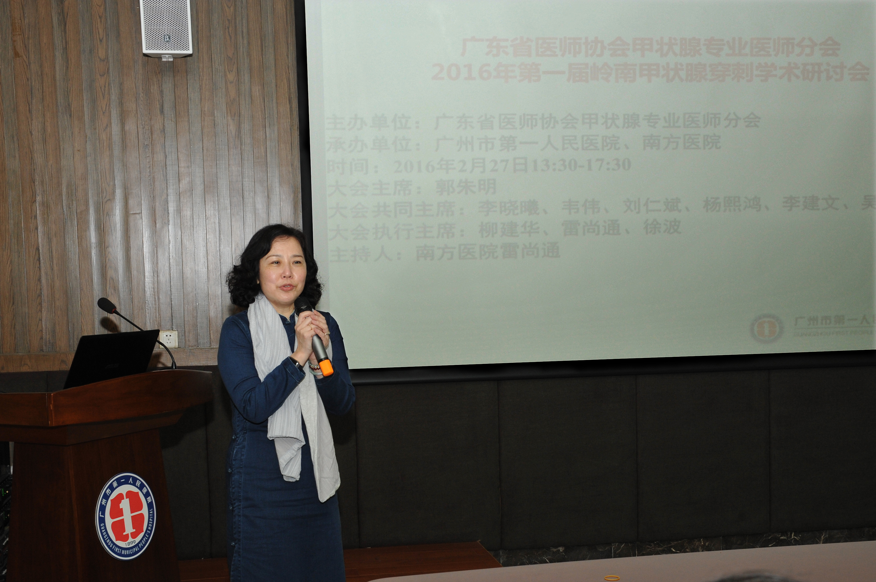 2016年2月27日,我院甲乳外科和超声医学科联合举办了广东省医师协会2016年第一届岭南甲状腺穿刺学术研讨会,其中我院徐波教授、柳建华教授担任会议执行主席。本次会议得到广东省医师协会甲状腺专业医师分会的大力支持,汇聚了来自省内外从事甲状腺外科、超声、内分泌、耳鼻喉科、病理和核医学等多个专业的一百多位专家学者,会场气氛十分热烈。
