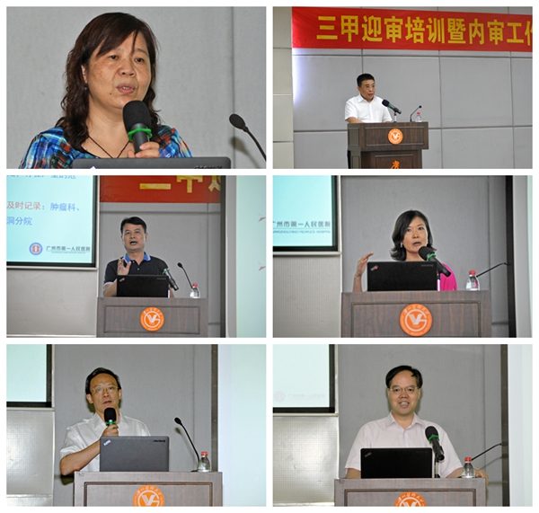 时间来到2015年9月22日-24日,医院组织专家领导进行院内自审。9月29日下午,我院在广州医科大学报告厅召开三甲迎审培训暨内审工作反馈会,主要对医院自审工作进行总结和反馈,并邀请已经通过三甲复审的中山大学附属第一医院医务处陈虹处长,为大家做“等级医院评审应对与体会”讲座,详细介绍了现场评审的特点、条款结构及解读、材料准备及人员应对等几大方面,最终实现全员参与,责任明确,部门协同,持续改进的评审要求。刘朝晖副院长、贺小伶副书记、江新青副院长分别就医疗组、管理组和护理组的内审情况做了反馈,并明确确立10月15日为完成整改“回头看”的时间。大家都很珍惜这次反馈的机会,两百人的会场座无虚席,很多同事即使没有座位也从头坚持到底。