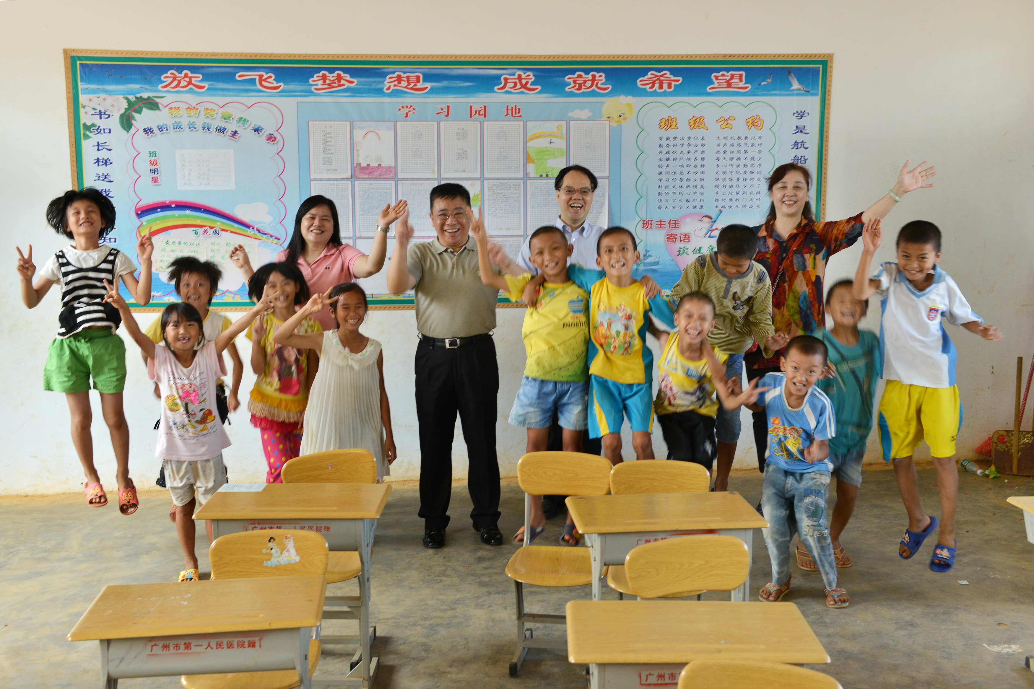 随后,曹杰院长一行来到后坑小学,参加后坑小学“创强”项目竣工剪彩仪式。后坑小学梁校长用一连串的“感谢”,表达对我院全体职工的深深谢意。梁校长表示,教学环境的改善,不仅让师生告别了“一刮大风沙尘漫天飞舞、一下大雨遍地举步维艰”的状况,更是让后坑小学注入了新的动力。曹杰院长表示看到焕然一新的后坑小学十分激动和感慨,非常荣幸能为盐田的教育事业出一份力,寄语后坑小学的孩子们发奋学习,报效桑梓,并与孩子们合影留念。在震耳欲聋的鞭炮声中,后坑小学“创强”项目竣工剪彩仪式圆满完成!