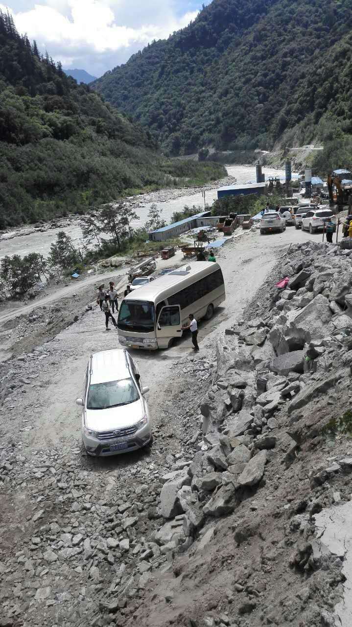 江新青副院长一行从林芝到波密的路上,遭遇多起大的泥石流,幸运赶赴当地后,医疗队快速熟悉情况,并于第二天早上即开始义诊、组织抢救车祸伤者,忙到晚上9点多才暂告段落吃上中饭。