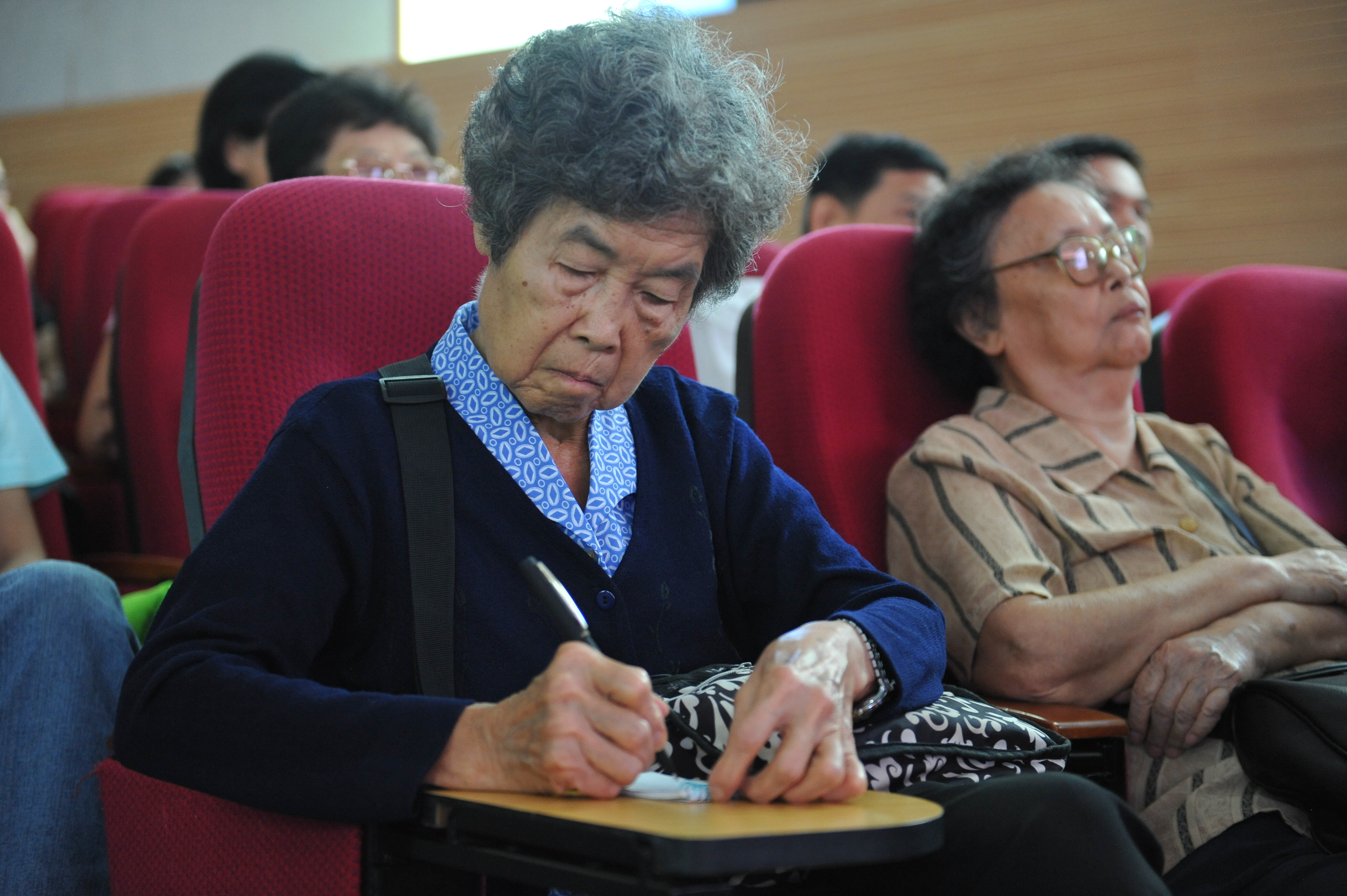 在回答听众提问的环节中,现场气氛活跃,市民踊跃向两位院长提问。当一位71岁高龄的胃癌患者带来自己厚厚的病历资料向曹院长提问时,曹院长照顾老人做过手术,快步走下演讲台,来到老人身边,细心地了解病情,肯定了患者的预后方案。