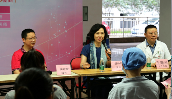 活动在科教信息部包品红主任的致辞中拉开序幕。随后医务人员生动形象地对贫血、造血干细胞等知识进行了讲解,内容丰富多样,通俗易懂 。由血液科王顺清主任进行了“解除贫血困扰享受美好生活”的讲座,对什么是贫血、贫血的类型、危害、治疗等做了深入浅出的讲解,他呼吁市民关注贫血,尤其广东省是地中海贫血的高发地区,市民需了解地贫,重在预防。他讲完后,不断有市民找到王主任咨询。接着,中华骨髓库广东分库业务科科长汤寿春进行了“造血干细胞知识”的讲座,对什么是造血干细胞、造血干细胞移植及其意义、健康人怎样捐献干细胞等多方面进行了讲解,在讲解结束后一个市民马上咨询汤科长捐献造血干细胞事宜,说她早就想去做捐献干细胞的志愿者,但一直不知该怎么做,现场汤科长一一解答,并记下了她的联系方式。本次活动,还对参会登记的市民进行了免费血常规+ABO血型检测,并现场对检测结果有疑问的市民作出解答,还派发了造血干细胞捐献的宣传册。