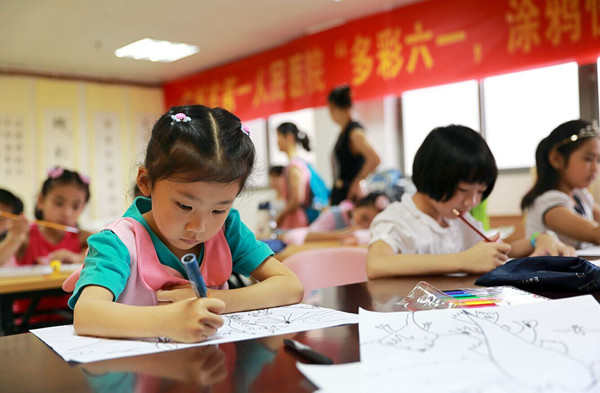 在慈善义卖前,由工会主办的“多彩市一,涂鸦快乐”职工亲子书画比赛早早开始了。47位小朋友分三个年龄组共同参加,20个孩子分获一二三等奖。