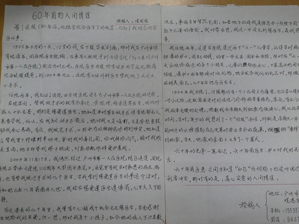 60年前医生恩情难忘 74岁老人撰文忆往昔