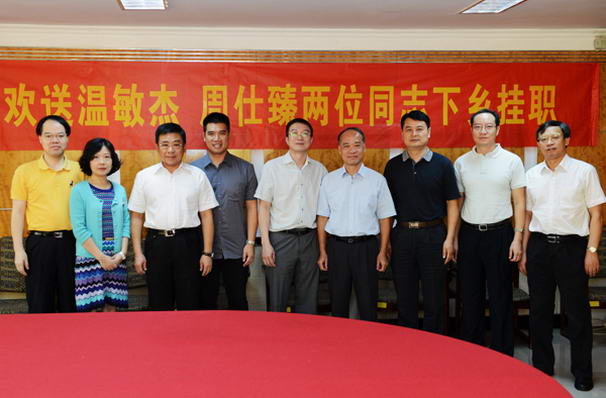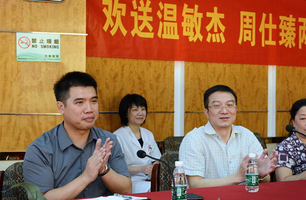 7月30日上午,我院举行了简单而隆重的仪式,欢送普外科温敏杰、工会周士臻两位同志分别赴梅州大埔县人民医院和湛江市雷高镇盐田村下乡挂职锻炼。全体院领导、医院办公室、人事部、工会、普外科等部室、科室领导参加了座谈会。