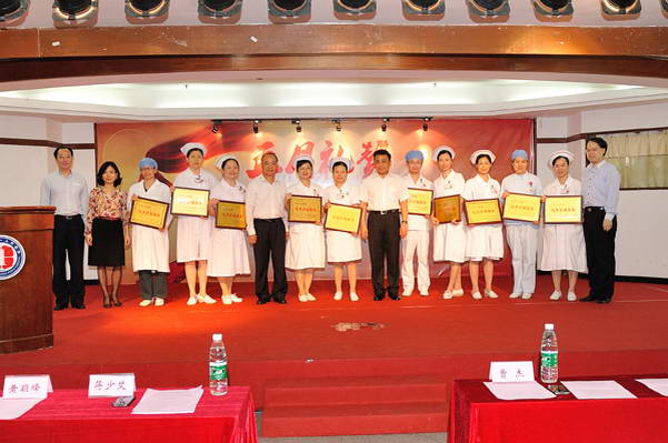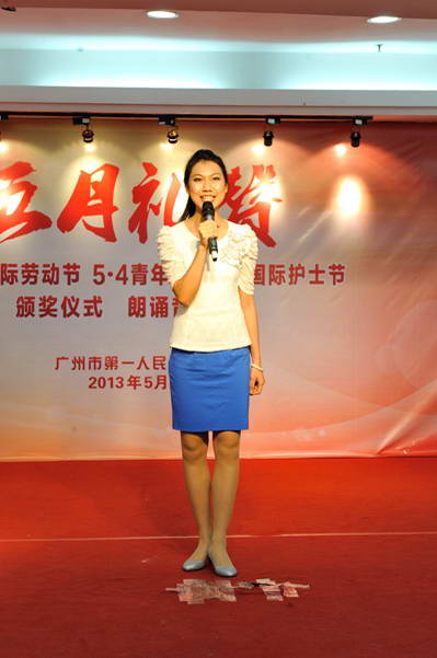 为纪念五一国际劳动节、五四青年节和五一二国际护士节,医院工会、团委、护理部于4月-5月联合开展了“五月礼赞”系列活动。护理部、工会主办了“抗非精神励我前行”演讲比赛(获奖名单后附),选拔出优胜者参加了市卫生局演讲比赛;团委、工会主办了“我的中国梦”原创诗歌、散文作品征集(获奖名单后附),成立评审组对征集到的作品进行认真、细致地评审。5月10日下午, 三个部门联合举办了纪念五一国际劳动节、五四青年节和五一二国际护士节颁奖仪式暨朗诵音乐会,全体在院领导、部分党总支(支部)书记、获奖代表、护士代 表、部门工会代表和青年代表参加了会议。大会分两部分进行,第一部分是颁奖仪式,院领导分批为工会、共青团、护理部近期推荐并获得省、市、局相关奖项、院 内评选奖项的先进集体和个人,以及演讲比赛和征文比赛获奖者进行了颁奖。蒋少艾书记在颁奖仪式后讲话,对获表彰集体和个人予以充分肯定,并号召全院职工学习先进、争当先进,展现“市一人”的精神风貌和价值追求。第 二部分是朗诵音乐会,“抗非精神励我前行”演讲比赛一等奖获得者现场进行表演;我院职工和青年艺术团成员朗诵了《芳心予人》、《我的中国梦》、《行走在梦 的路上》等职工原创诗歌、散文优秀作品;青年艺术团成员演唱了歌曲,整场朗诵音乐会内容充实、表现形式多样,得到了广大职工的好评。