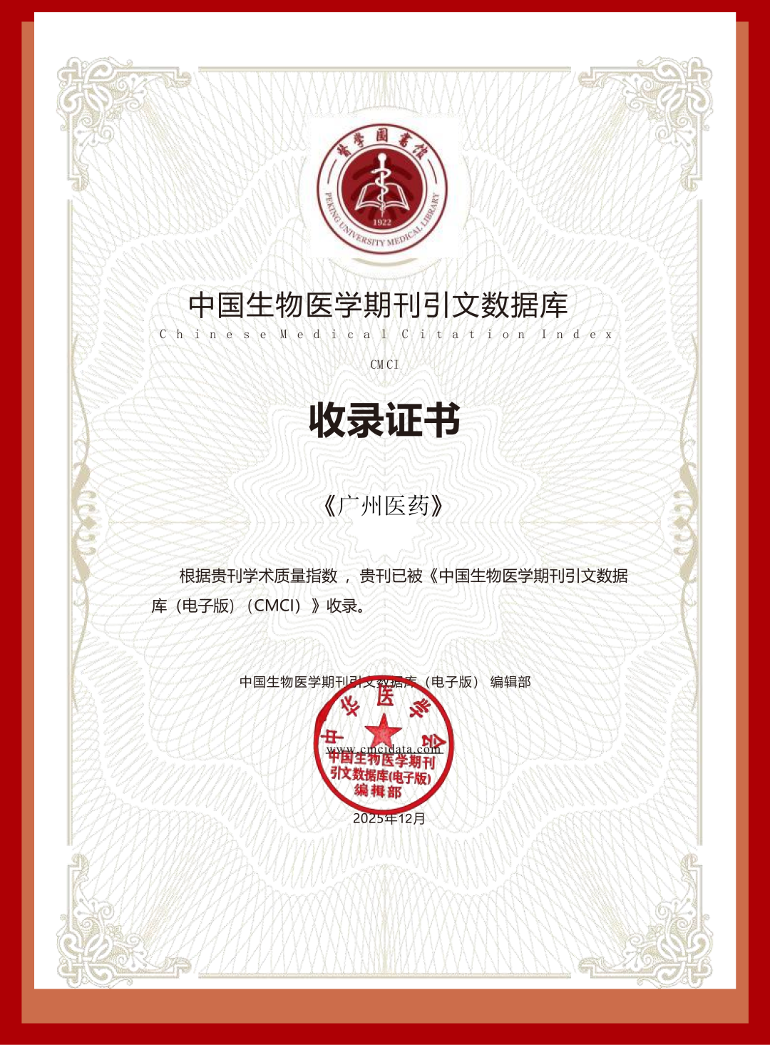 曹杰主编寄语:《广州医药》秉持“精研医道,求真创新”的宗旨,深耕医学领域五十余载,全面报道医学领域新动态、科研成果、临床技术及相关医疗信息,涵盖多个医学门类,已成为国内外临床医技人员、教学科研工作者交流学习的重要平台。此次成功入选CMCI,既是对期刊多年来坚守学术初心、严把内容质量的认可,也为期刊进一步整合学术资源、推动医学各学科协同发展、深化国内外学术交流搭建了更广阔的平台。