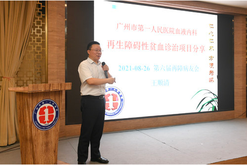 “和重型再障搏斗了三十年,今年5月终于在市一医院血液内科做了移植,获得了重生的机会,谢谢血液内科的医务人员……”8月26日下午,在广州市第一人民医院第六届再生障碍性贫血病友会现场,病友陈先生真诚地向血液内科医护人员鞠了一躬。受疫情影响,此次病友会邀请了部分住院的病友及家属代表,通过线上直播的形式,让更多的病友一起参与。