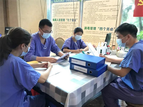 为迅速摸清隔离人员具体情况,6月14日,医疗队迅速分组进入隔离酒店排查,为首批入驻的282名隔离对象建立一人一档,迅速摸清所有隔离人员情况。