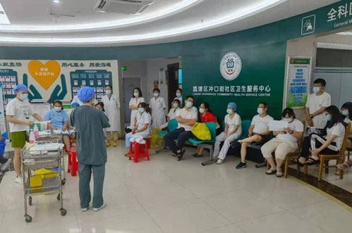 为解决广州荔湾区相关街道隔离期间居民就诊问题,经广州市卫健委指派,5月31日,市一医院派出13名经验丰富的医务人员支援冲口街社区卫生服务中心,每天均有包括3名医生、3名护士、1名医务管理人员。