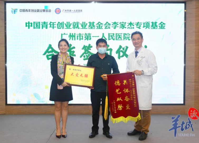 小轩爸爸给李家杰基金会和市一医院送上牌匾和锦旗