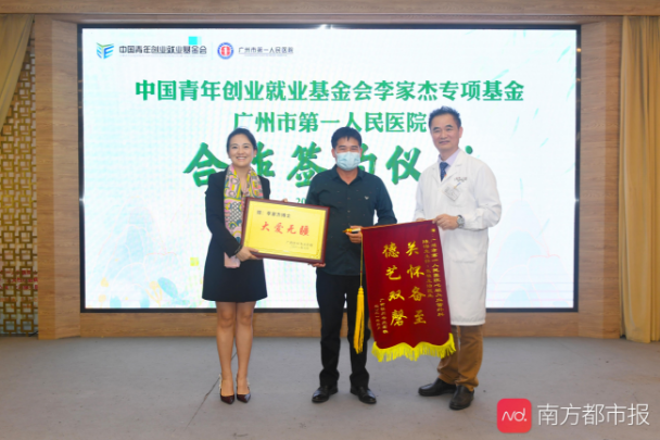 小轩爸爸给李家杰基金会和广州市第一人民医院送上牌匾和锦旗