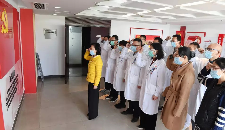 2020年1月22日大年二十九,医院抽调了40名医护人员,紧急组建“发热门诊留观病区”。1月25日大年初一,发热病区申请成立临时党支部,医院党委当即予以批准,“新型冠状病毒肺炎临时病区临时党支部”正式成立。第一批进驻临时病区的16名医生中有11名中共党员,医生党员人数占到医生总人数的68%。