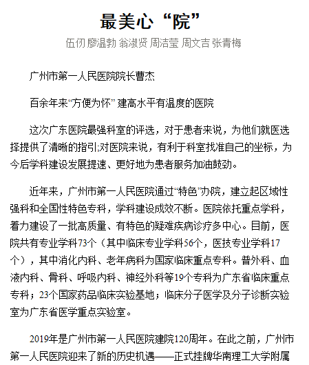 《广州日报》最美心“院”2019年12月31日T8版