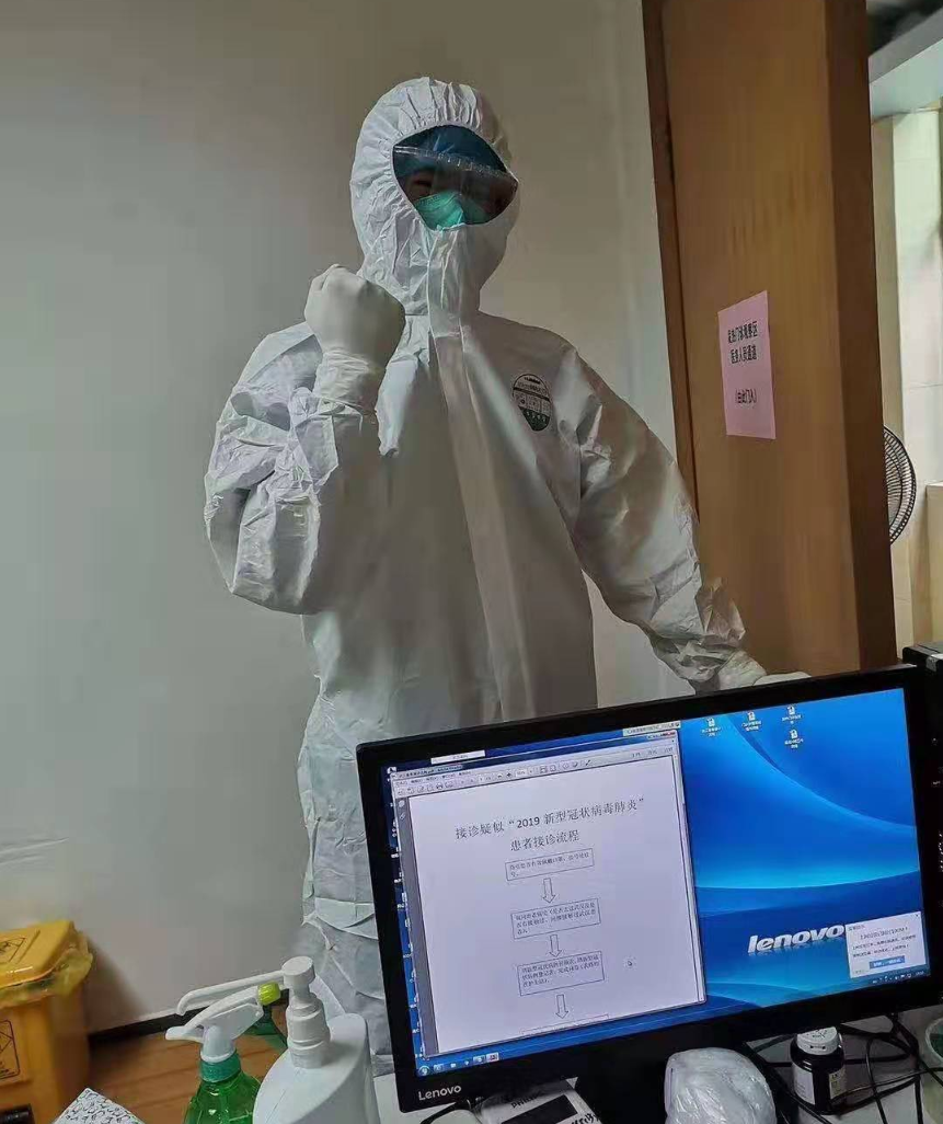 1月23日医院组建新的发热病区后,为避免交叉感染,需要放射科专人专机到发热病区工作。90后的市一医院影像团支部书记黄家豪首先站了出来,“我没成家,没有后顾之忧,随时准备上一线”。穿上笨重的防护服一开始会有点闷,“不能吃、不能喝、不能拉”,为了节省物资,他们要坚持一个半天甚至是更长的时间才能出来“透口气”。他笑着说,“同事们都这样的,我也已经习惯了这种工作状态”。