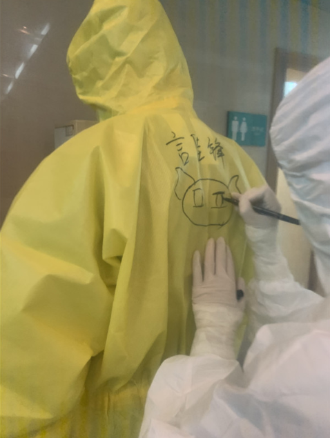 进入发热病区后,他迅速进入工作状态,因为个头大,他穿着黄色防护服像只“大黄蜂”, 经过几小时的忙碌,当他脱下防护服,同事从背后看到他的衣服已被汗水浸湿。发热病区是实行三班制,言佳锋却把自己的换洗衣物、洗漱用品都带来了医院,偶尔回去洗个衣服就又回来了。